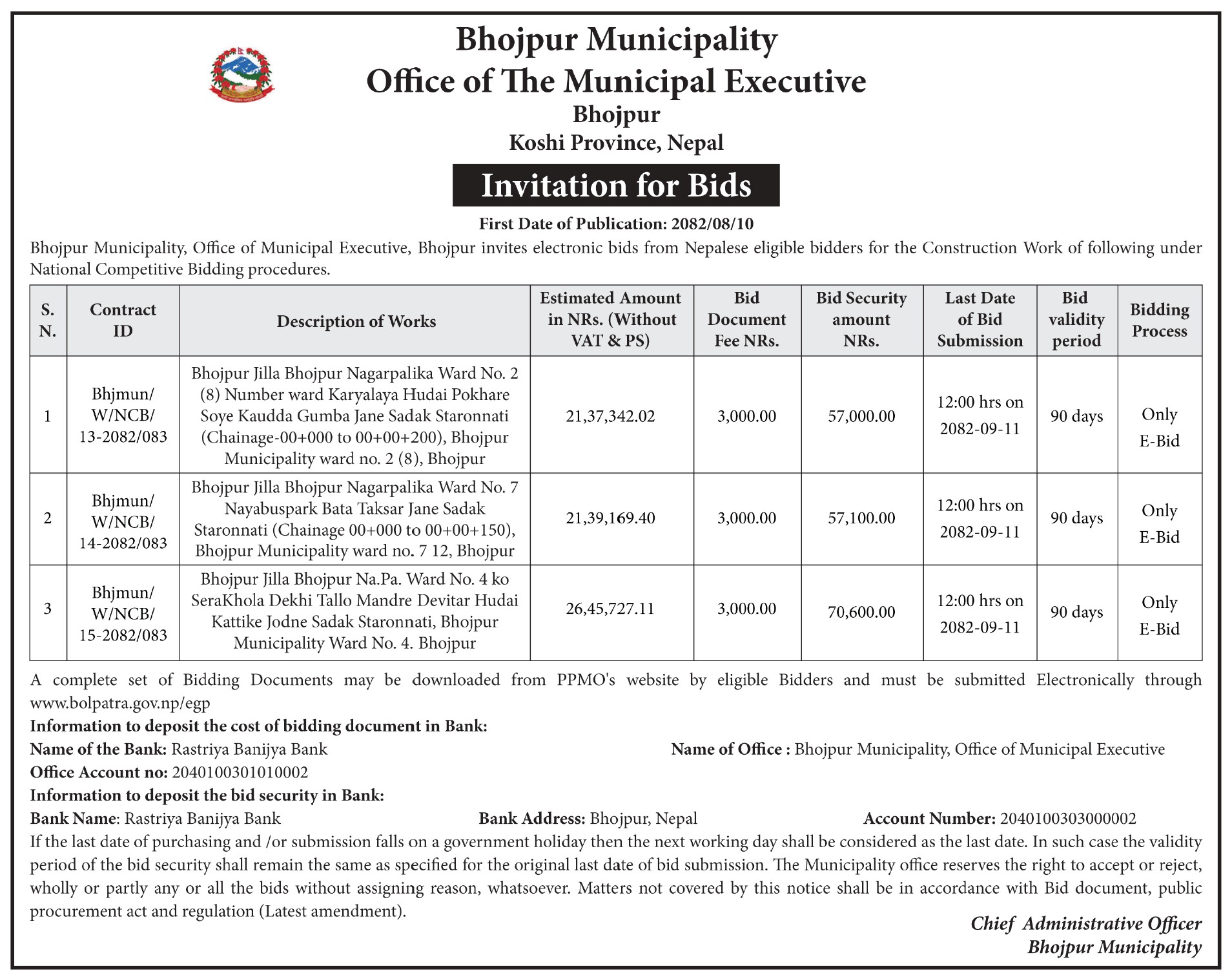 सार्वजनिक खरिद/बोलपत्र सूचना