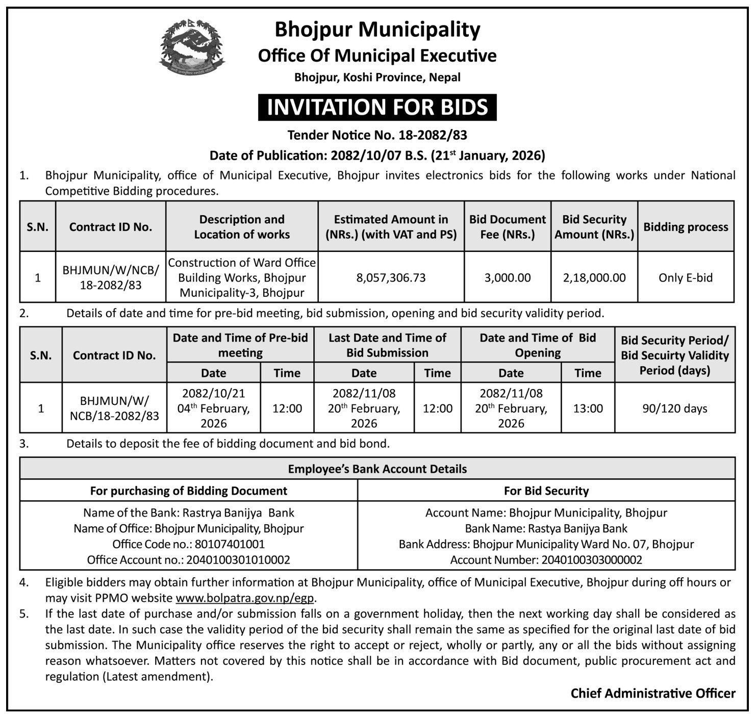 नगरकार्यपालिकाकाे कार्यलय, भाेजपुर, कोशी प्रदेश, नेपाल
